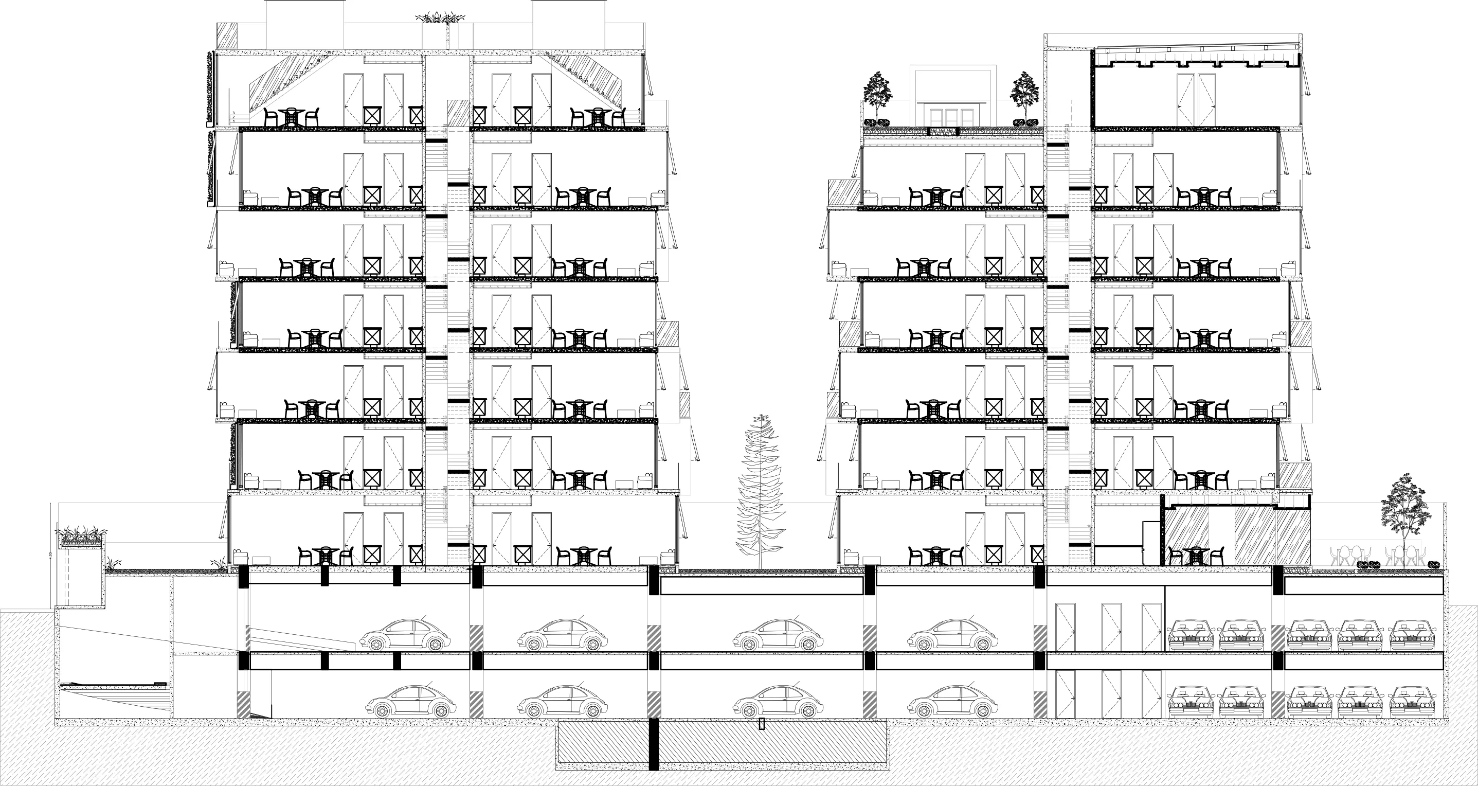 Ubicado en la colonia del Valle, Ciudad de México. El proyecto se compone por dos torres de siete niveles, donde se resuelven 50 departamentos, amenidades y áreas verdes. Cabe mencionar que se resolvió con un área libre del 50%, contrastando con el lote típico de la zona, lo que permitió conservar arboles existentes y áreas permeables.